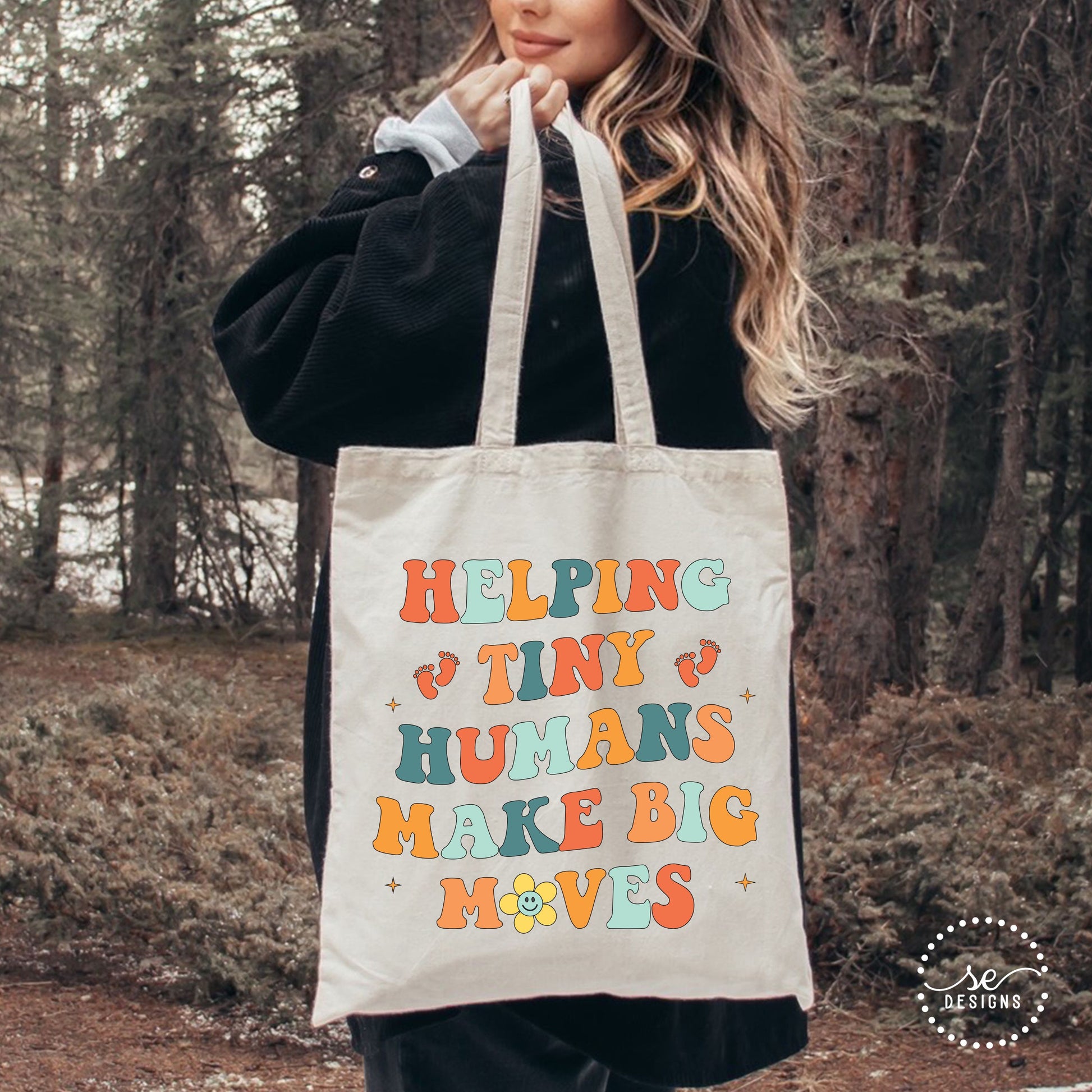 Helping Tiny Humans Make Big Moves Canvas Tote – Teacher & Caregiver Tote Bag